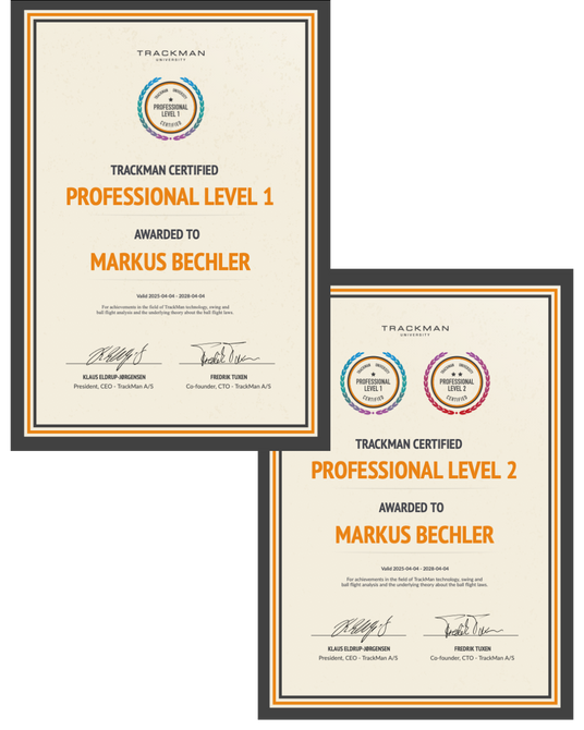 Markus Bechler verfügt über beide TrackMan-Zertifizierungen (Level 1 und Level 2) und ist zudem von Callaway als Fitting-Experte zertifiziert.